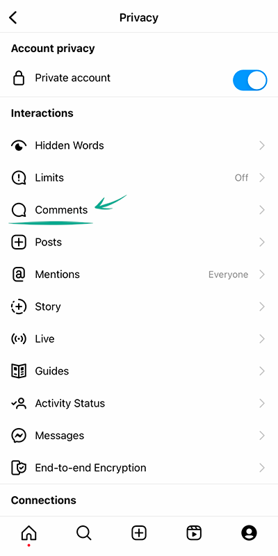 • Turn on Private Account